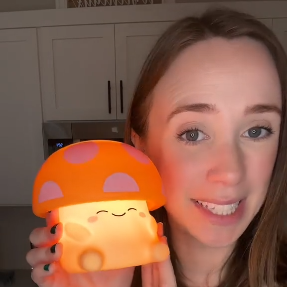 This little mushroom light is perfect 🍄✨! No cords. Light is warm and diffuses nicely. Great for a desk/bedside lamp.